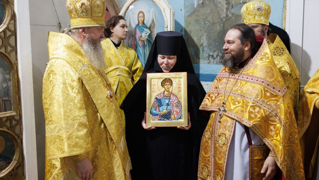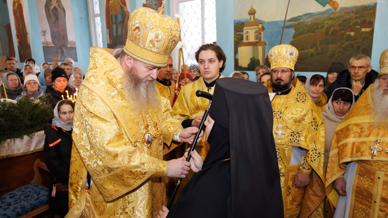 Во время малого входа, митрополит Пантелеимон возвел во монахиню Софию (Бугаёву) во игумению Иверского женского монастыря, возложил на нее крест и вручил игуменский жезл. Это знаменательное и историческое событие для сестёр обители совершилось на основании решения Священного Синода от 20 марта 2025 года (Журнал № 21).