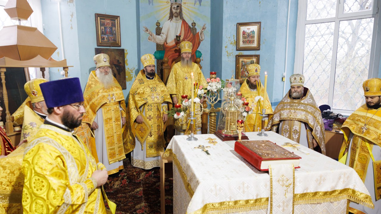 За Литургией Его Высокопреосвященству сослужил секретарь Епархии прот. Андрей Зозуля, игумен Вознесенского мужского монастыря архим. Иоанн (Сухина), благочинный Александровского округа прот. Иаков Лобов, благочинный второго Луганского округа архим. Тихон (Ильгов), благочинный Станично Луганского округа прот. Алексий Храбров, настоятель храма и строитель монастыря архим. Сергий (Громовик), а также приглашенное духовенство.