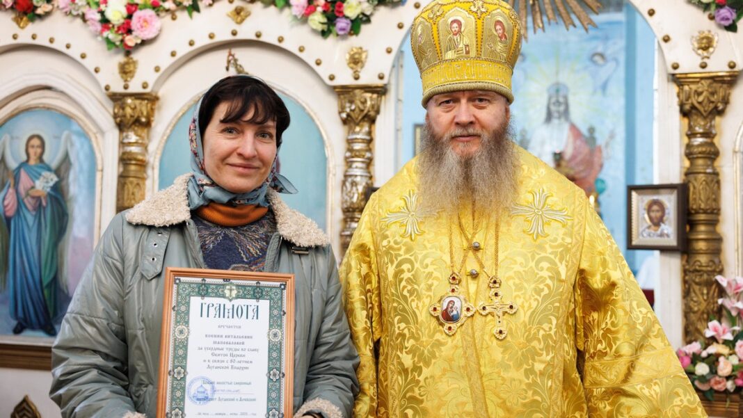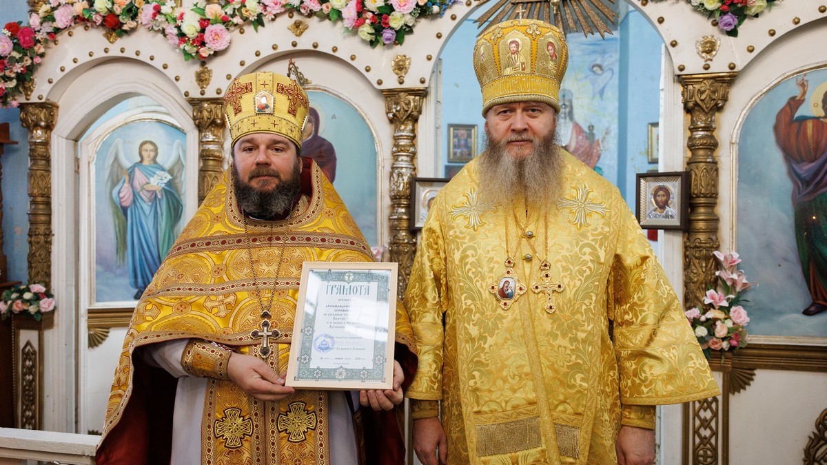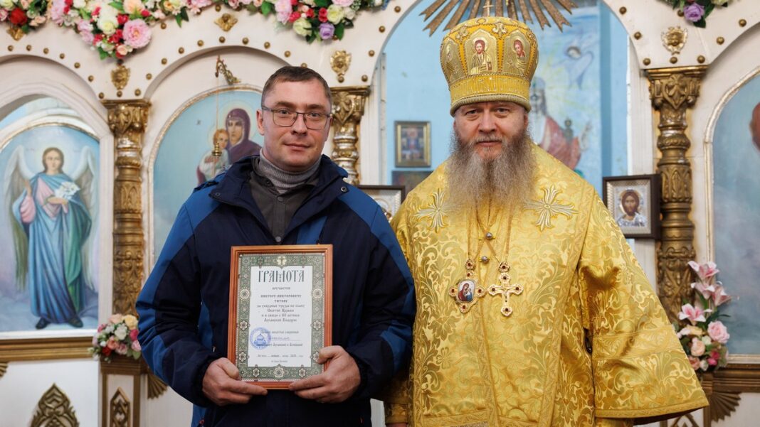 В завершение, владыка вручил юбилейные грамоты труженикам, помощникам и тем, кто совершает свой посильный вклад в становление новооткрытой обители.