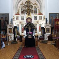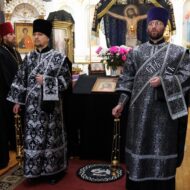 За Литургией Его Высокопреосвященству сослужил секретарь Епархии прот. Андрей Зозуля, благочинный Александровского округа прот. Иаков Лобов с духовенством благочиния.