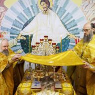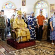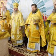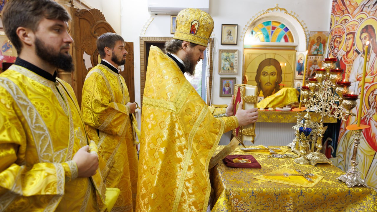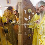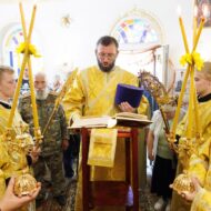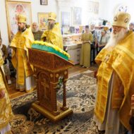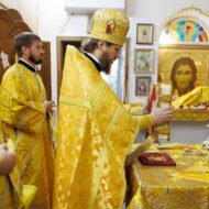 По окончании Литургии было совершено славление и вознесена молитва святому покровителю храма. В завершение богослужения, владыка поздравил паству с престольным днем, настоятеля храма и всех именинников с днем небесного покровителя, и преподал всем архипастырское благословение.