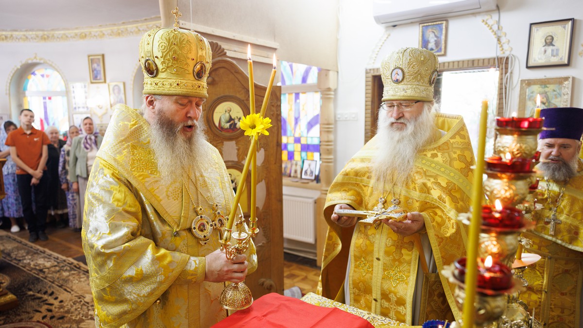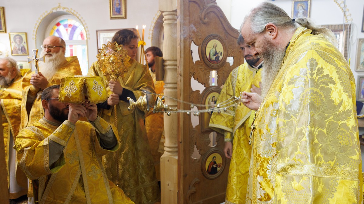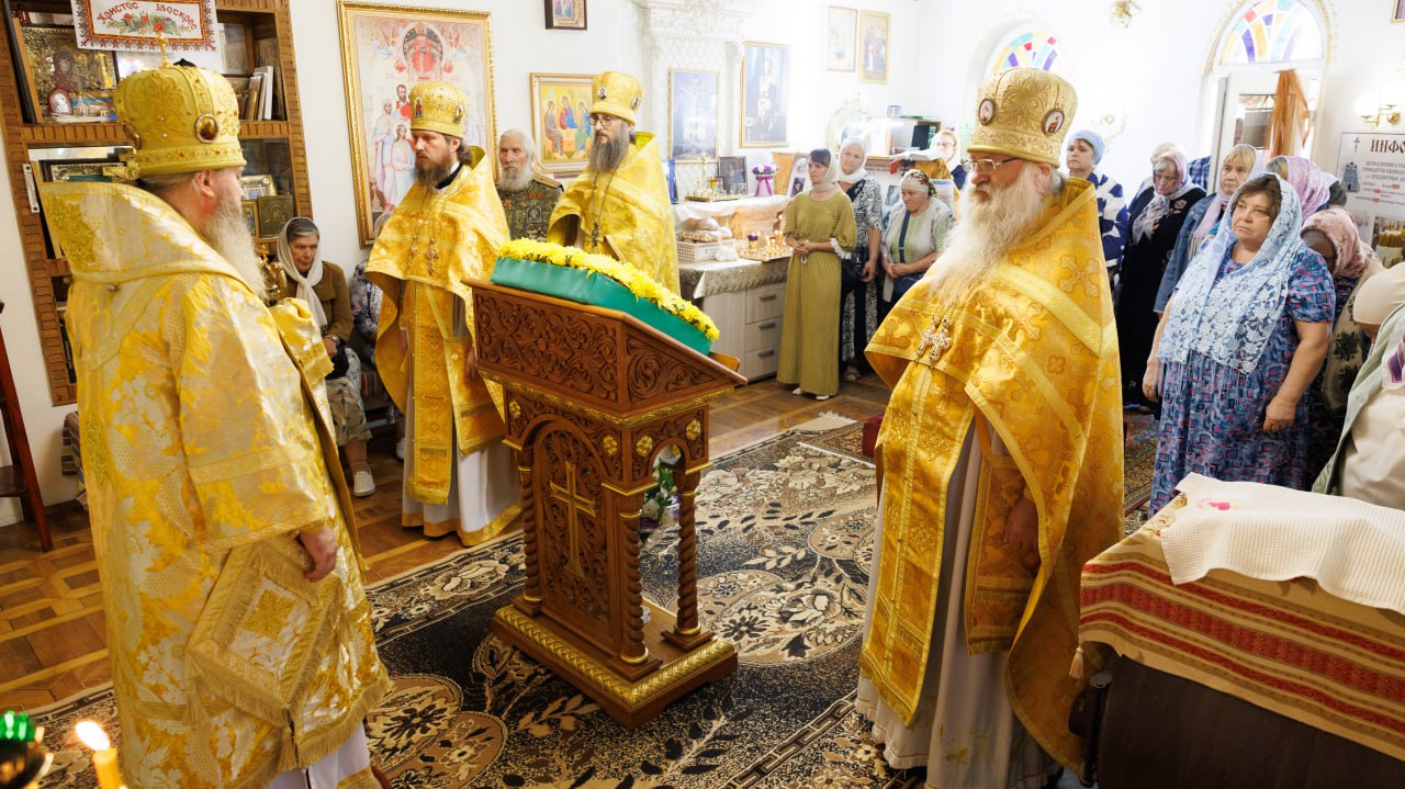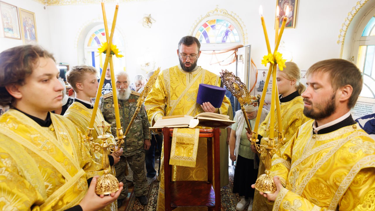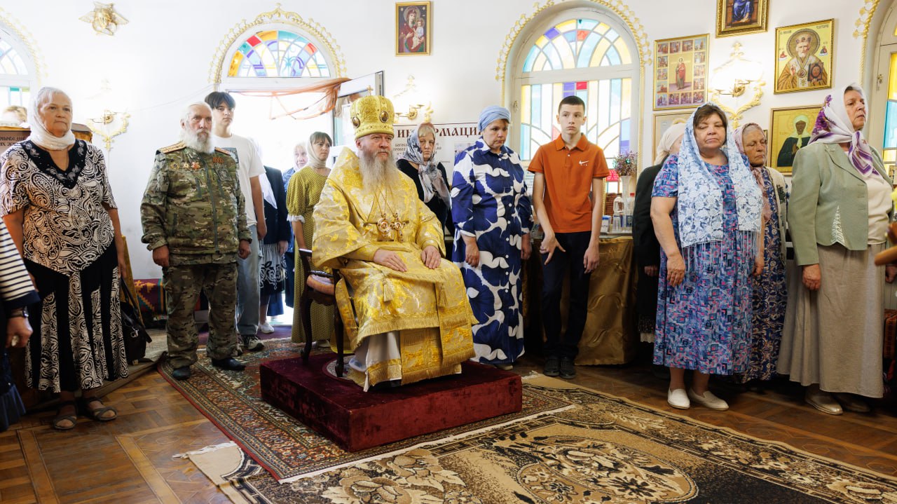 За Литургией Его Высокопреосвященству сослужил секретарь Епархии прот. Андрей Зозуля, благочинный Александровского округа прот. Иаков Лобов, настоятель храма архим. Алексий (Дмитренко), а также клирики прихода. После сугубой ектении владыка вознёс молитву о мире на святой Руси, и молитву об исцелении болящих.
