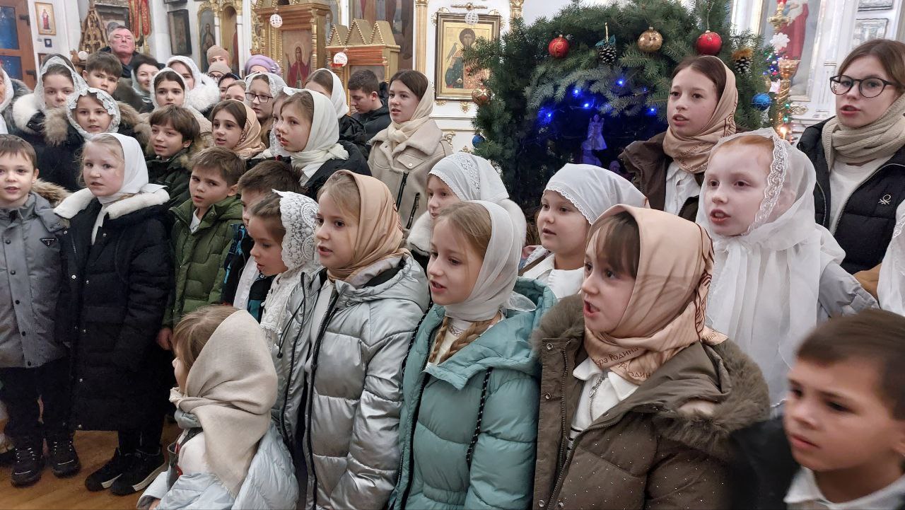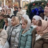 По окончании службы состоялся концерт в честь Рождества Христова правого хора и детской Воскресной школы. Затем дети г. Александровска, по традиции, прославили по очереди Богомладенца Христа своими стихами перед Вертепом.